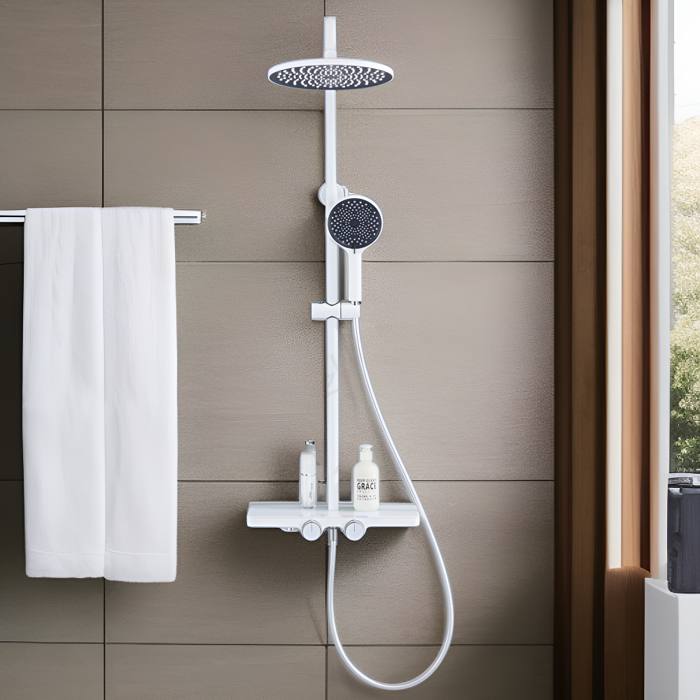 バスルーム用大型棚と銅製蛇口ハンドシャワー